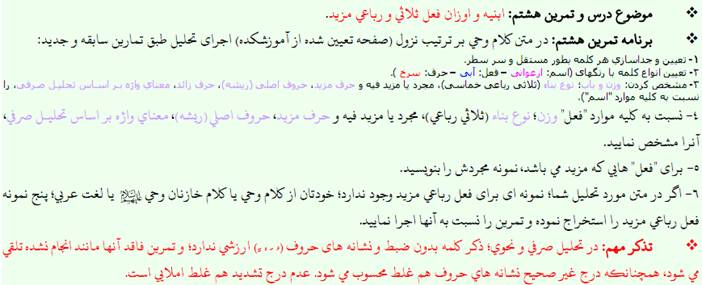 تمرین 8 صرف فصیح - سطح 1