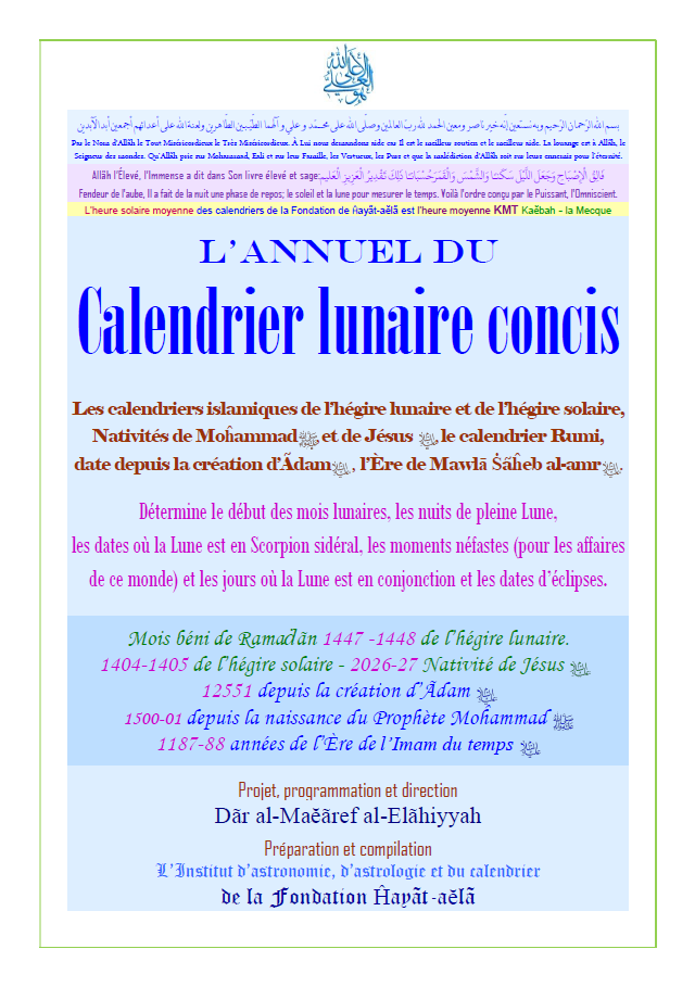 L’Annuel du Calendrier concis lunaire تقويم فشرده فرانسوي