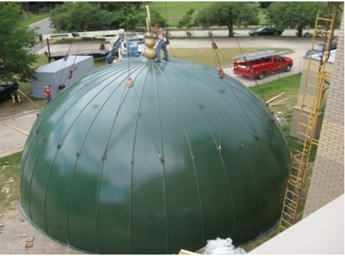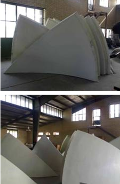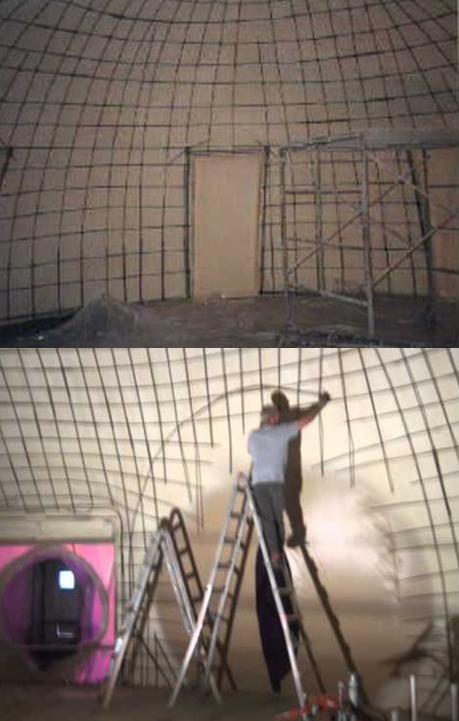 این "بالون" ساخته شده از مش نایلون / پلی استر اشباع شده با پی وی سی ،و بسیار سخت است، و در نهایت تبدیل به سقف و دیوار بیرونی گنبد خواهد شد.