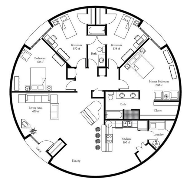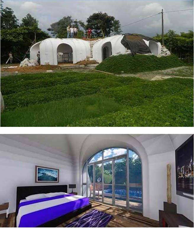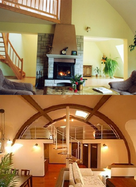 داخل خانه های گنبدی بتونی به راحتی می تواند مانند تمام خانه های عادی و معمول دارای سونا استخر اتاق ورزش و...باشد.