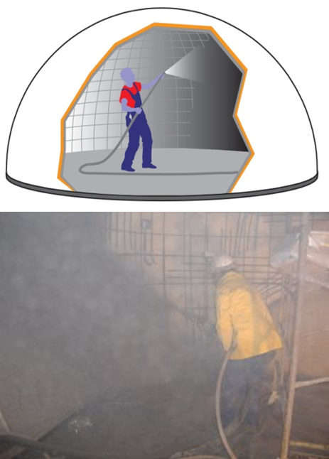 شاتکریت(Shotcrete) مخلوط خاصی از بتن است که مقاومت بالایی دارد .این نوع از بتن توسط دستگاه های خاص به روی سطح داخلی گنبد اسپری می شوند.تا روی عایق فوم و شبکه ی فولاد تقویت کننده را بپوشانند و آن را تقویت کنند.زمانی که سه اینچ از شاتکریت بر روی سطح داخلی اعمال شد دیگر خود پوسته (گنبد )مقاوم شده و کار گنبد به پایان رسیده است.