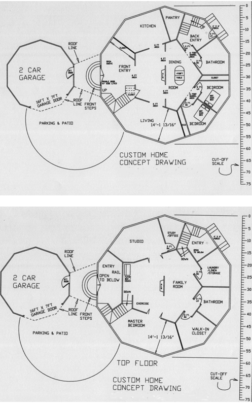 کیت ها معمولا بر روی پلان 10ضلعی(خانه زنبوریhoney comb)طراحی و اجرا می شوند این نوع نقشه ها برای چیدمان اثاثیه و مبلمان بسیار کارآمد هستند علاوه بر آن،نقشه های خانه زنبوری اجازه ی داشتن طبقه دوم،گاراژ،اتاق های عالی و... را ایجاد می کند.