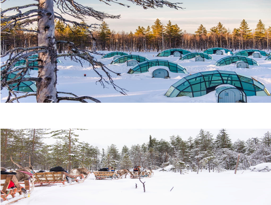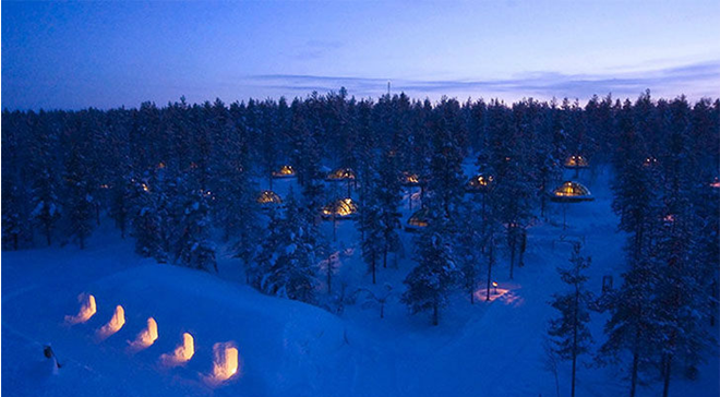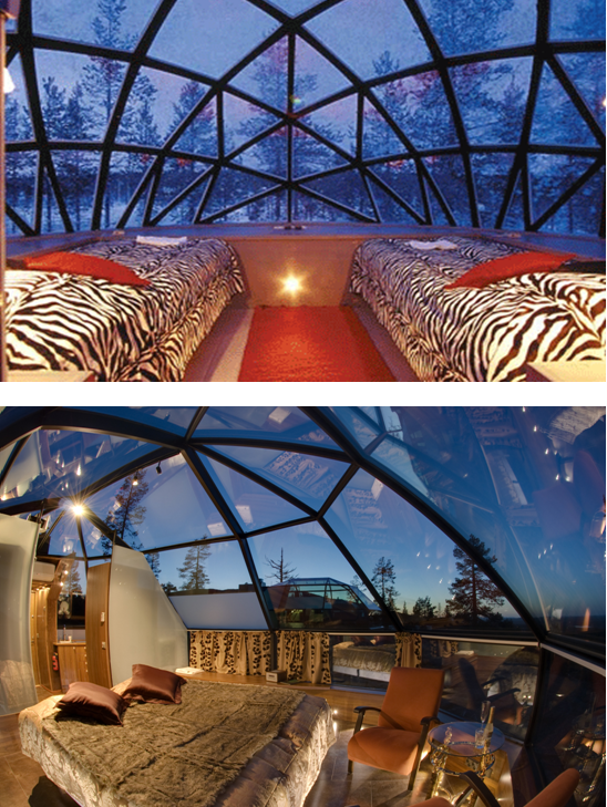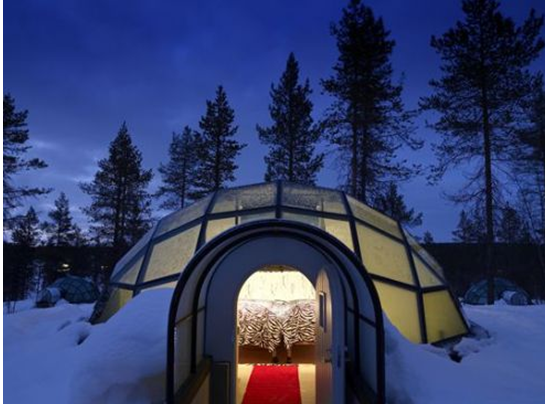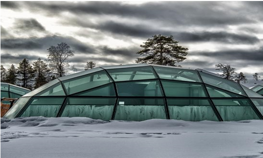 در یک منطقه بیابانی در نزدیکی پارک ملی اورهو ککونن فنلاند در روستای ایگلو مجموعه از از بناهای گنبدی شیشه ای به چشم می خورد که مجموعه هتل های شیشه‌ای کاکسلائوتانن نام دارد.