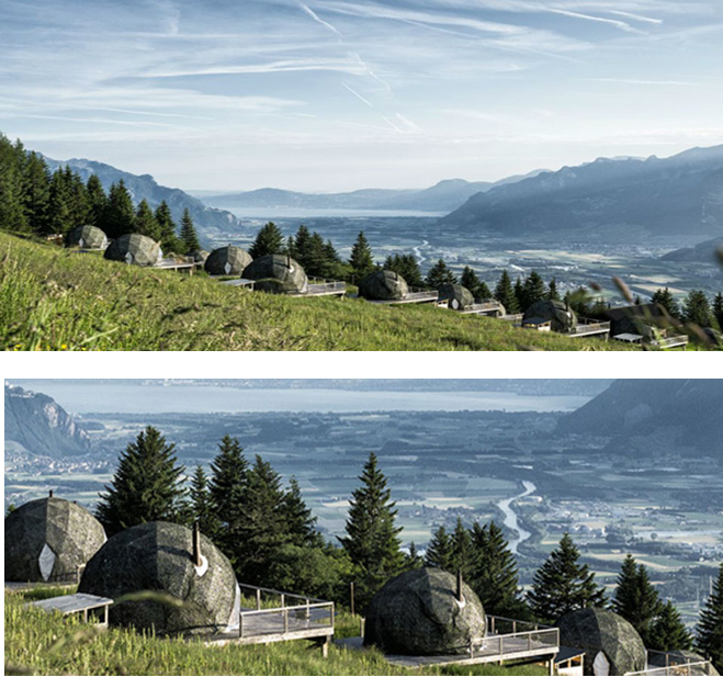 هتل گنبدی در قلب کوه های آلپ سوئیس