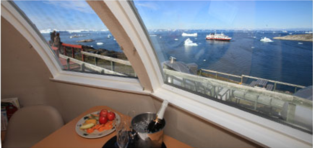 شیشه‌ای بودن هتل، امکان رویت ستارگان شمال و شفق قطبی و تماشای آسمان بی نظیر قطب را به طور واضح در حالی که در اتاق‌های کاملا راحت در حال استراحت هستید، فراهم می‌کند.