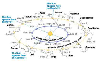 در این تصاویر حركت خورشید در دایرة البروج از دید ناظر زمینی نشان داده شده است.